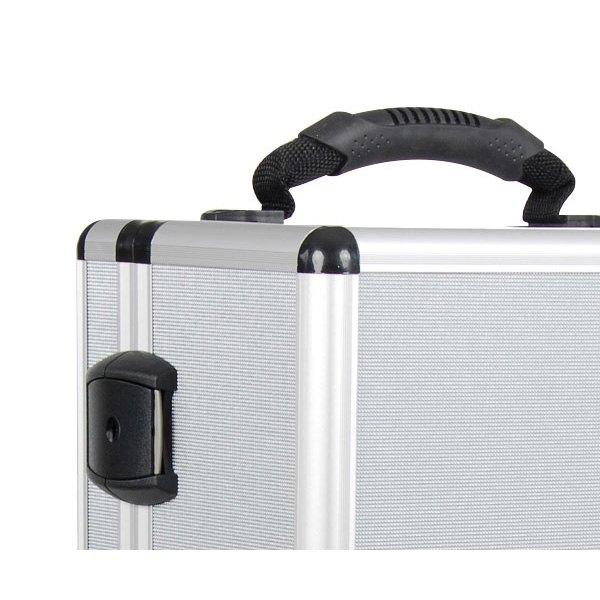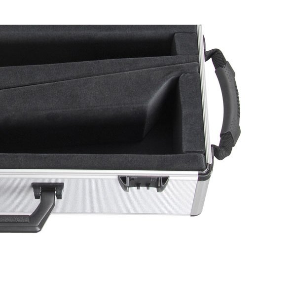 Aluminiowa obudowa ze wzmocnieniami ze sklejki o grubości 6 mm oraz czarnymi narożnikami. Posiada dwie rękojeści (górną i boczną) oraz dwa wysokiej jakości zatrzaski. Mocna wyściółka zapewnia doskonałą ochronę. Duża komora na akcesoria i miejsce na nuty.