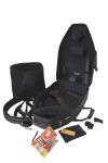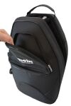 W zestawie znajdują się szelki plecakowe Marcus Bonna „Strap with Loop”, wykonane z poliestru i skóry, z metalowymi elementami (passerby, D-ring).