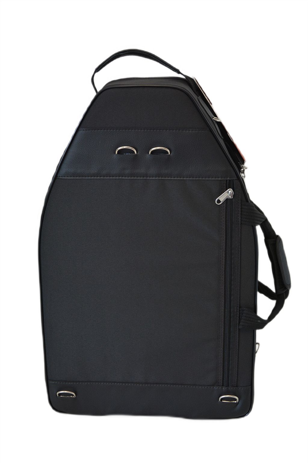 Czara instrumentu umieszczona jest na górze korpusu waltorni, wewnątrz piankowego ochraniacza dzwonu. Korpus instrumentu stabilizuje pasek na rzep, który unieruchamia go podczas transportu. Wewnątrz futerału oraz w zewnętrznej kieszeni można przechowywać drobne akcesoria. Futerał mieści także dwa tłumiki.
